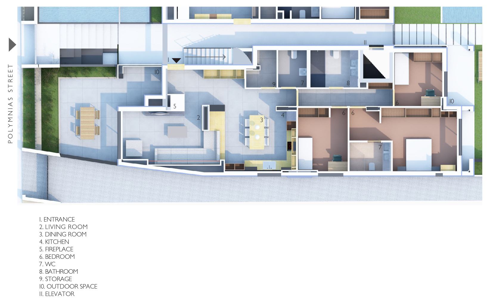 At the apartment are placed 3 bedrooms (1 master bedroom), a living room, a dining room, kitchen, bathroom, wc & a storage room. The apartment has a sharing swimming pool (of total area 35 sqm), fireplace, parking place and in total 58 sqm of outdoor space.